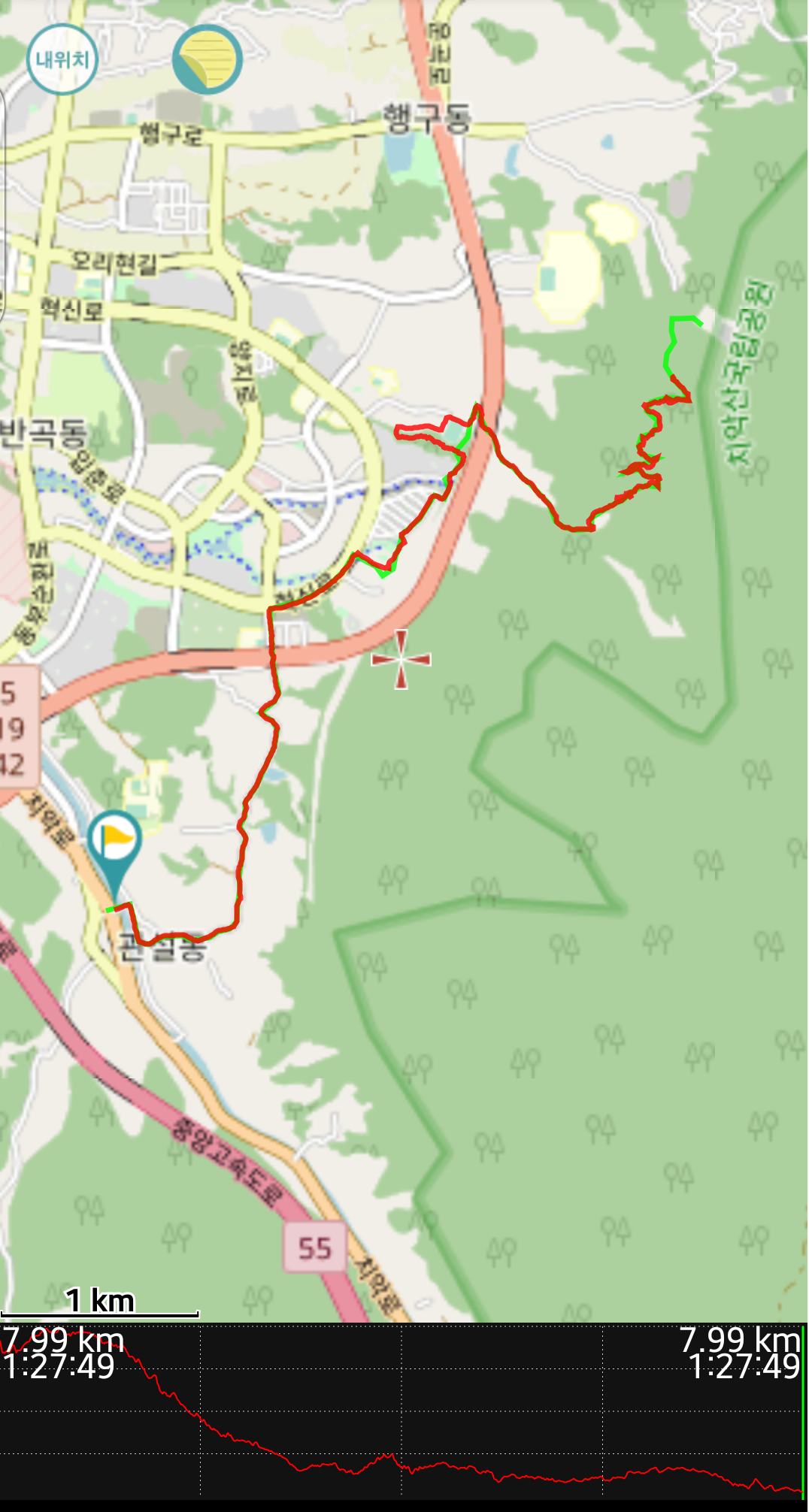 11길이 퇴근후에 걷는 길(정말 여러번 걷고 있음) 섭재슈퍼에서 헤매며 공사중인 임도 길을 돌파하며 걸어서 더 돌파해야 하는데, 아흐...당둔지 주차장(09:44)~국형사 주차장(11:58) : 2시간14분 걸림