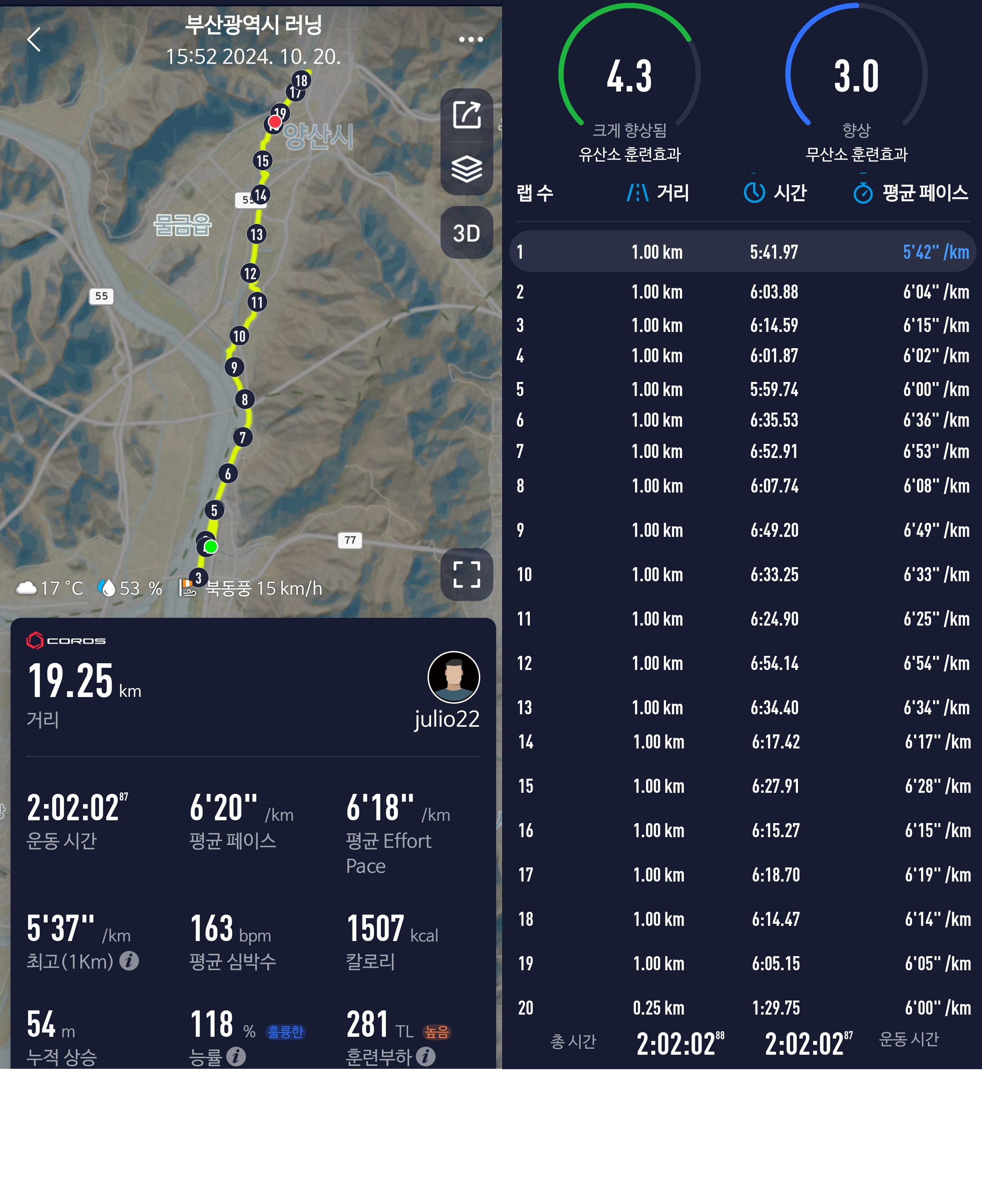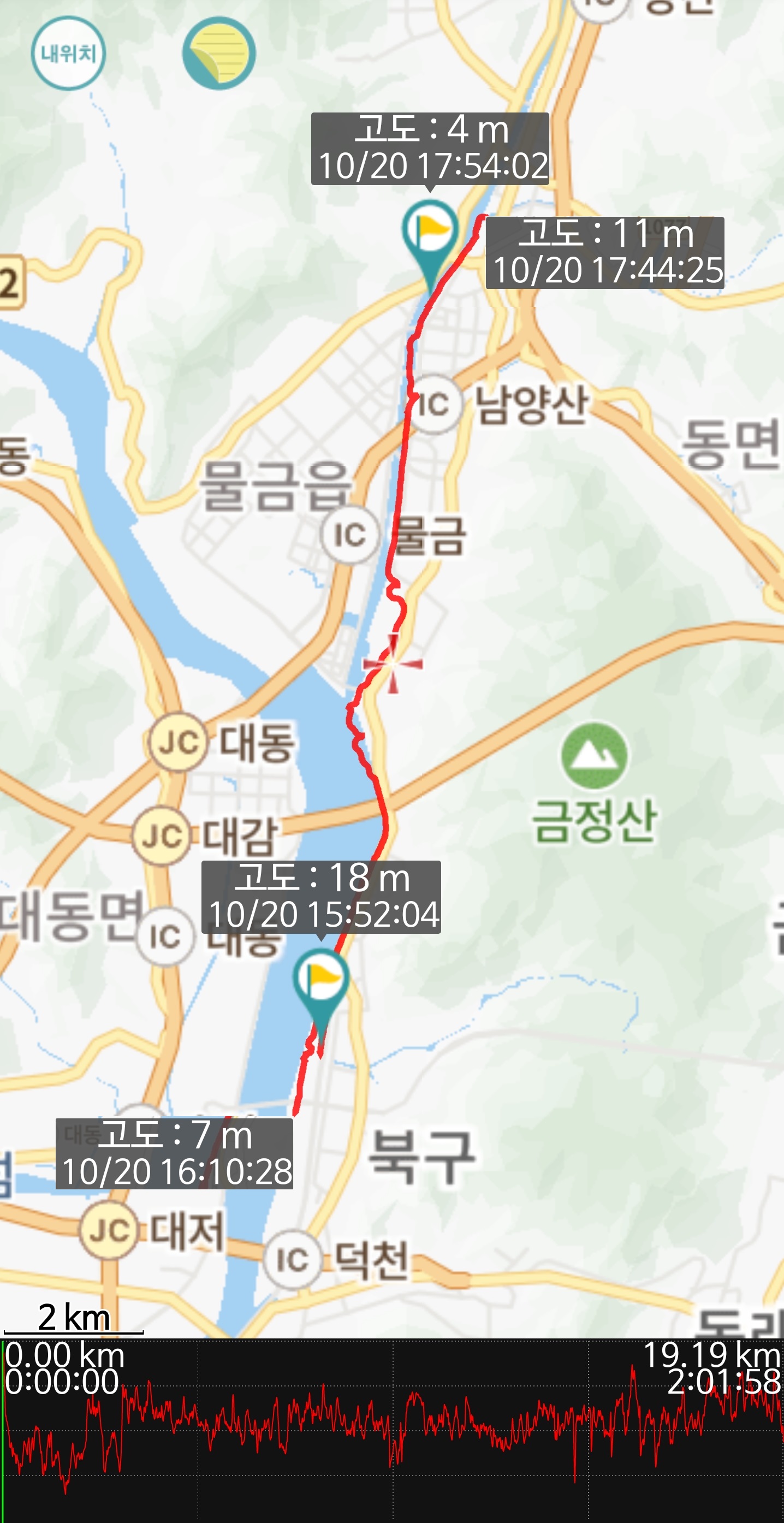 거리: 19.19km (산길샘) / 코로스는 19.25km 였음*_*