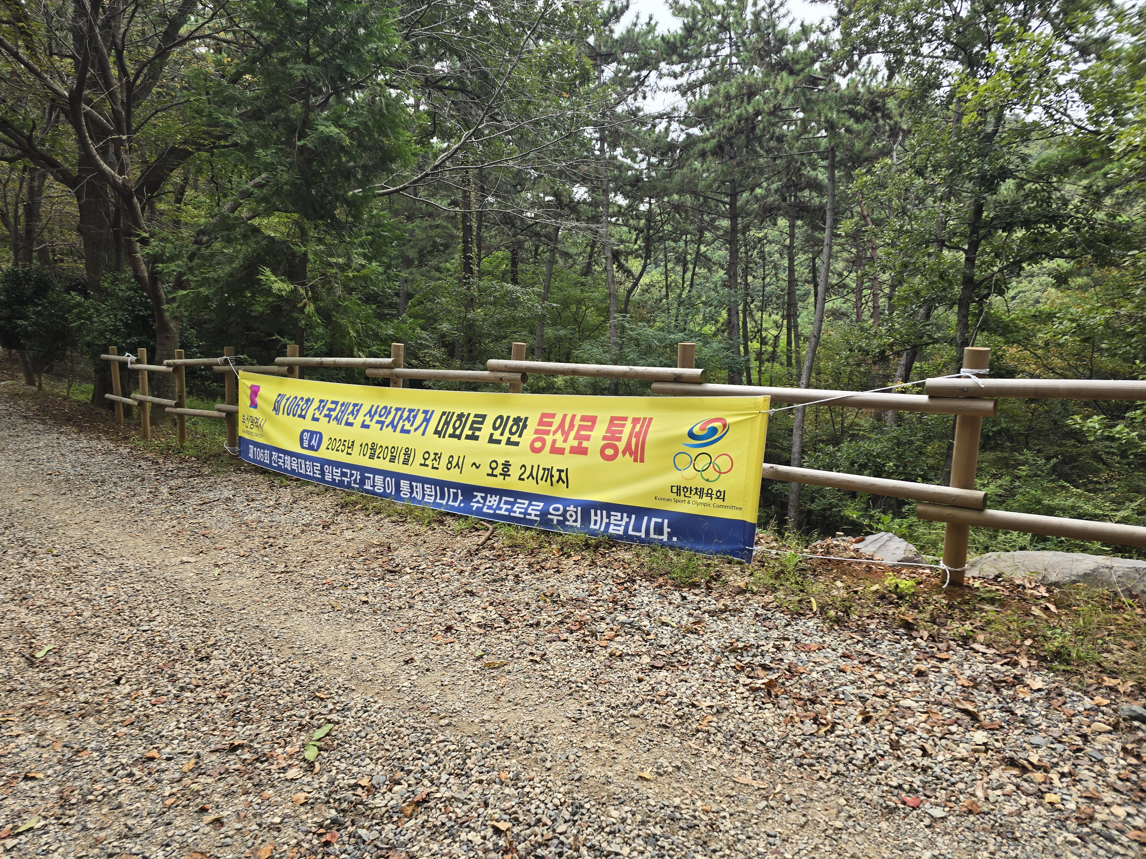 MTB 코스가 있던데 106회 전국체전 산악자전거 대회가 10월20일에 운영되어 그날은 등산로 통제가 된다는 플래카드를 보았다.