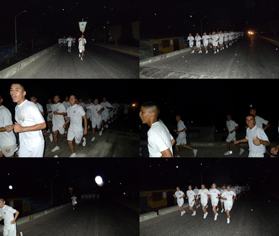 그러다, 경찰생도들이 달려가는 걸 보고 꽁지에서 달리면서 몇가지 물어복, 정원 200명, 2개반이 있고, 졸업 후 거의 경찰이 된다고 한다. 예전엔 다리 근력이 붙으면 달려보리라 했는데, 마지막엔 앞으로 빨리 달려가 사진도 좀 찍었다. 약간 비가 왔지만 역시나 새벽은 개운하다. (일교차가 큰 편이다.) 그리고, 경찰생도들에게 animo (힘내)라고 외쳐줬다.