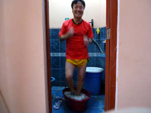 현관에서 땀난 사진도 한번 찍어보고 ㅋㅋ ,그뒤로, 부엌청소하고 된장찌게에 밥해먹고,빨래까지 했다. 8시30분이 되더만! 그렇게 한국이었으면 아침을 이렇게 사용하지 않았을 ... 그래도 즐겁게 즐겁게!