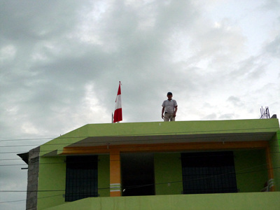 오늘은 이상하게 빨리 달리지 못했다. 체력은 충분했는데...... 근력운동을 하지 않아 그런 것 같다. 그래도 오늘 폭죽은 제법 길었다. 10발은 쏜 것 같다. 그리고, 페루 국기를 내거시는 분에게 foto라고 외치고 한 컷 찍었다.