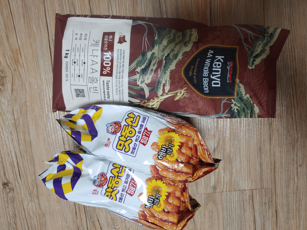 케냐 AA whole bean 1kg 29900원 와우 가격이 너무 올랐지만, 24년 까지라 가장 신선한 듯 하여... 이디야 원두는 200g에 10900원 이라 .. 그런데 23년 9월 까지라서. 2+1 이면 괜찮은 것 같기도 했으나, 그냥 홈플러스 브렌드를 구입했음.
