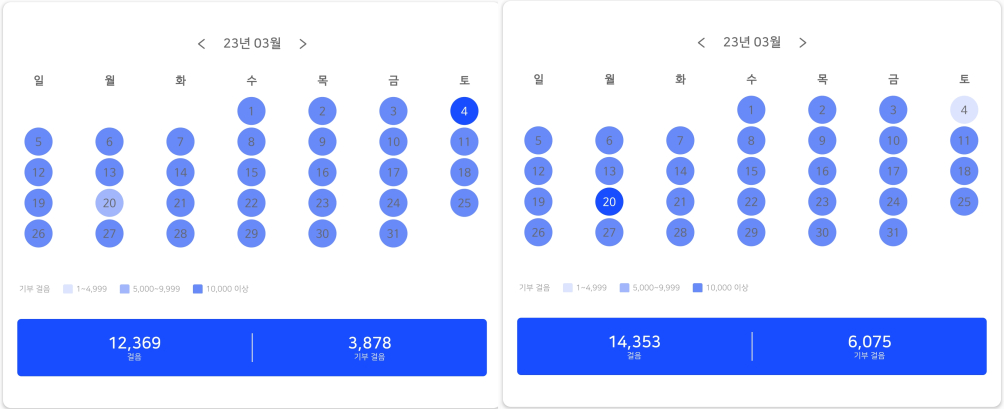 토스 걸음분석 월간 결과를 1일에는 전월전체 분석을 볼 수 있었으면~~ [지났지만, 빅워크 앱에 있는 것으로 확인했음]