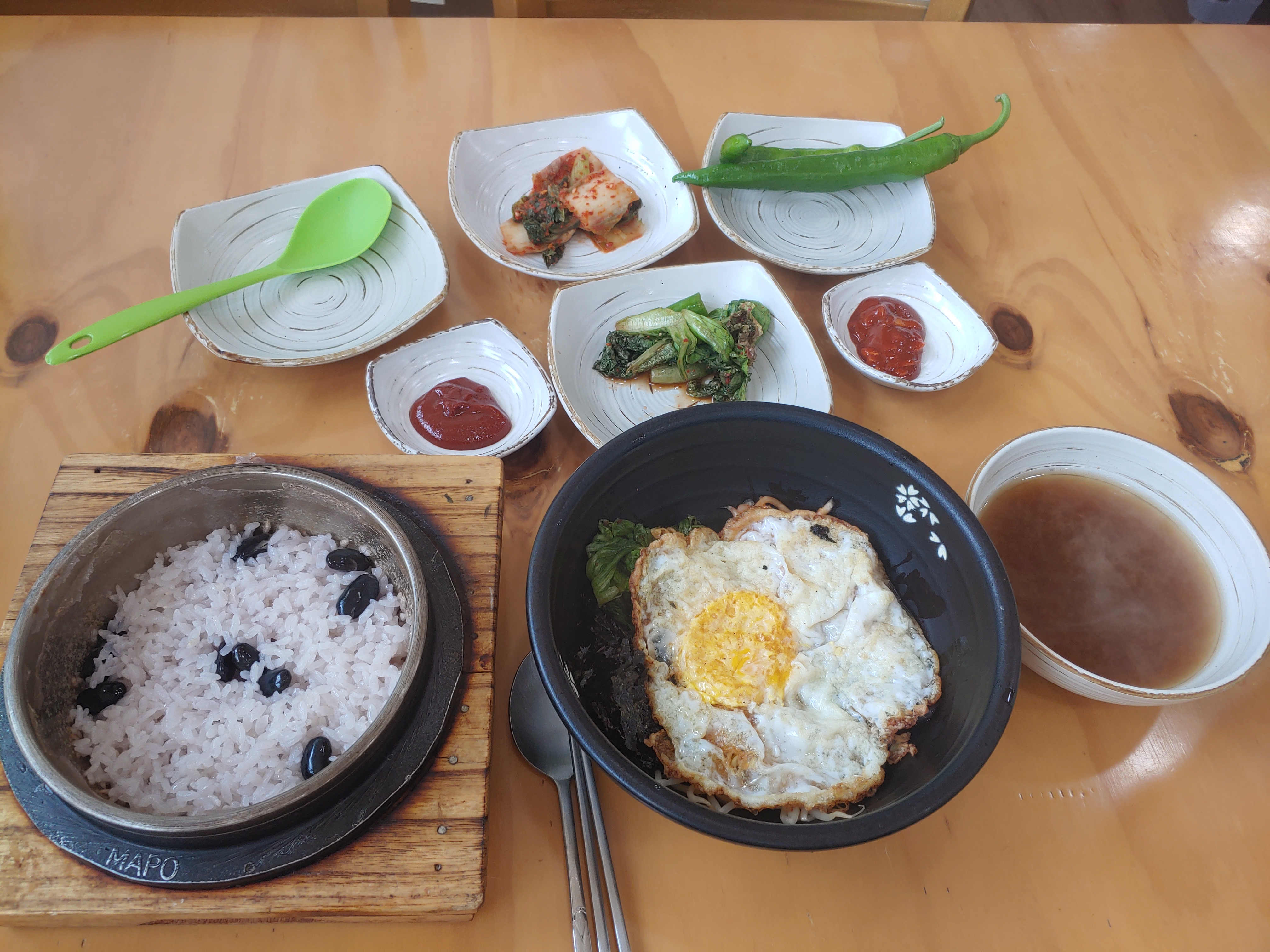 식당 들어갈 생각을 못했는데, 택시기사님이 버스 하루에 2대라며 뻥치는 말에 2만원주고 태종대 가서 시간 아끼려는 마음을 비우고 나니, 아점으로 먹어야지 하며 10시50분쯤에 들어가서 먹었다. 알고보니 단체 30명이 있어서 조금 늦게 갔다면 먹지 못했을... 삼삼하고 건강한, 더덕구이 15000원이든데 먹고 싶었으나, 단체손님에.. 포기! 2시간 비우는 시간 말고, 알차게 잘 다녀옴. 비오는데 섬안이까지, 태워주신 노부부 멋짐 가득!