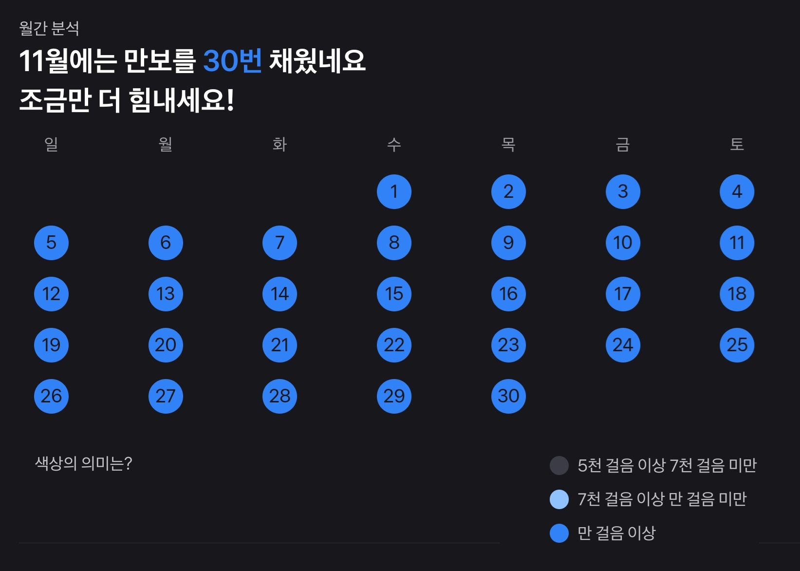 일만보는성공했으나, 푸쉬업은 안했음, 12월엔 두가지 다하기로.