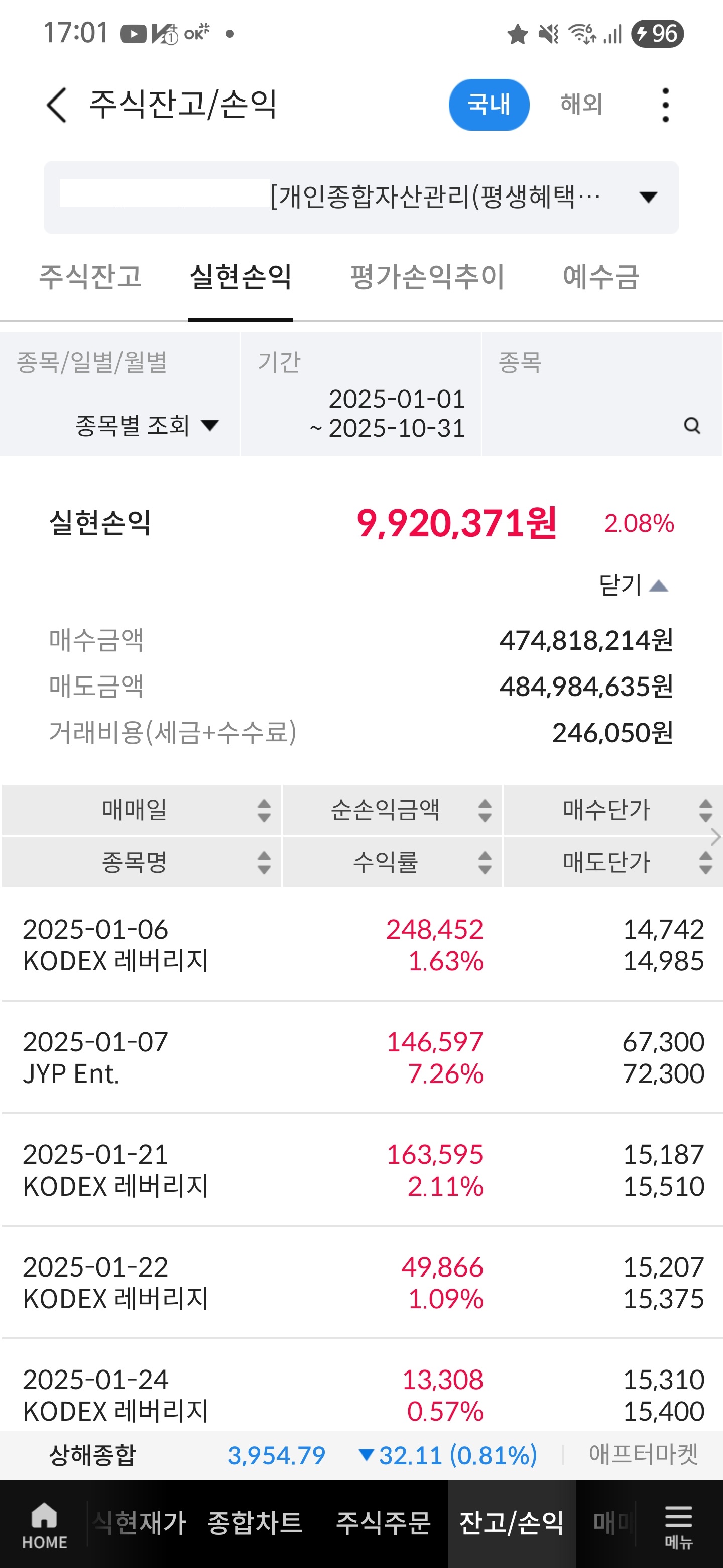 그렇게 단타나 잠시 잠깐 거래하는 것 말고 주식도 많이 하지 않다가... 아직도 돈 보단 삶의 가치 검색에 더 집중하는 중이라... 하지만 ISA 계좌에 6천만원 정도 넣어 둔게 있어서, 그것으로 운좋게 10월31일 기준 아래와 같이 대략 9백9십만원 정도의 수익을 냈다. 7월 어머니댁 이사하면서, 에어콘, 이사비 등등을 생각해서 좀 집중했는데, 운좋게 수익을 냈고, 그렇게 ... 포스코 손절 금액은 2백정도만 채우면 플러스가 되는군요!