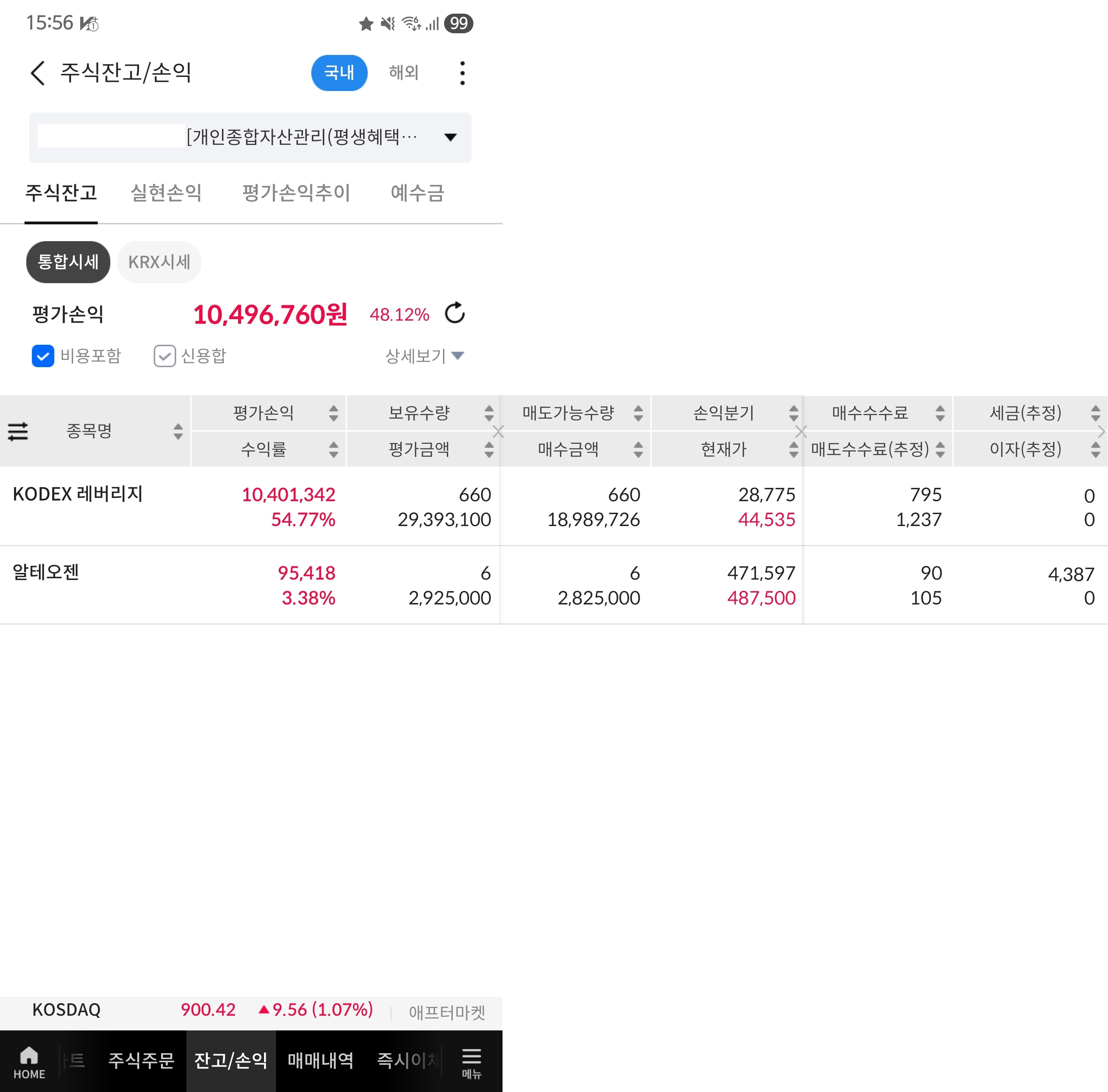 2. 삼성ISA계좌로 KODEX 레버러지 종목 중심으로 단타로 거래했다 9,920,371원 실현이익을 봤다. 이게 아니였다면... 정리를 더 미뤘을 수도...^^;