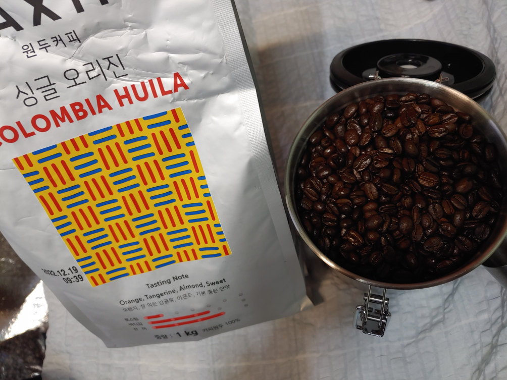 다이소 5,000원과 고민하다 11마존 미니 패스 이용 중인데 구매는 안하고 ^^; 그렇게 주문해서 2주만인가 받았음. 홈플에서 맥심 싱글오리진 팔아서, 이번엔 콜롬비아, 담엔 다시 에티오피아 마실 예정! 브라질은 ~~ ^^;