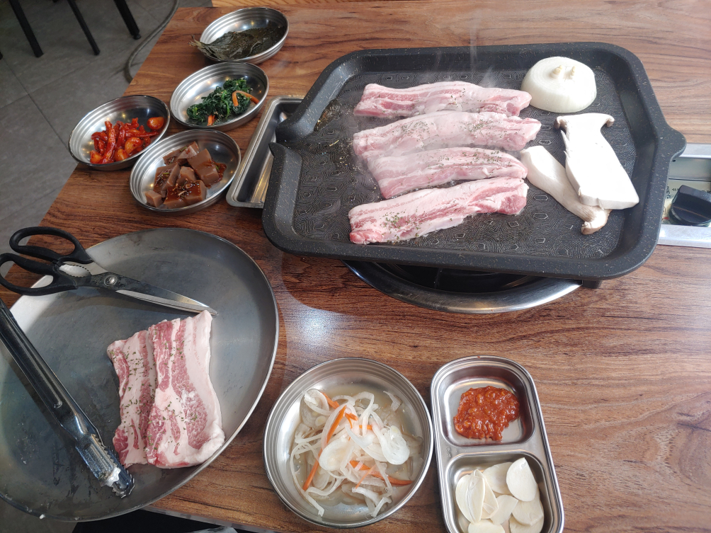 오후 2시 넘어 가서 삼겹살 3인분 먹고 왔다. 구워주는 줄 알았는데, 내가 구워먹어야 했다. 그럴거면 2인분만 시켰을텐데, 배텐 보고 나서 눈치 안보고 먹으려면 3인분 주문하면 된다고 해서 했는데, 아흐! 부추/김치/상추는 사진찍고 나왔는데, 찍으려다 귀찮아서 찍지 않음. 3인분 39000원, 내가 굽지'만' 않았다면 딱 좋았을텐데,