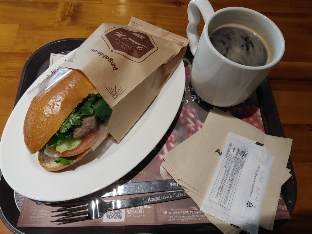 엔젤리너스 쿠폰 구입한게 있어 어쩔 수 없이 겁나지만 신림역가서 쇠고기 반미와 커피한잔 째빨리 먹고 걸었음.